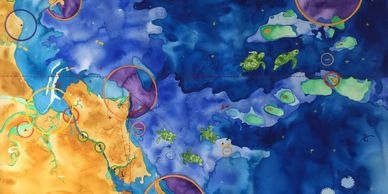 The Tropic of Capricorn lies slightly north of Curtis Island and just above Heron Island. My interest in mapping and my use of mapping symbols in my paintings led me to expand my area of interest to include the Capricorn Cays, the Keppel Islands, and the Capricorn coast.