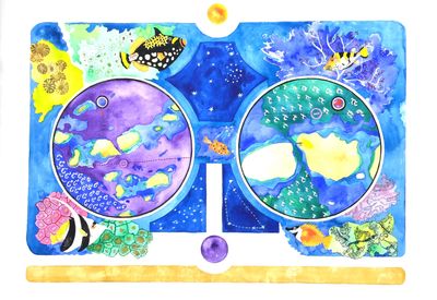 Coral Cay an interactive, immersive, multimedia installation is part of this exhibition and enhances this exploration, depicting 24 hours on a coral cay and features footage photographed at Heron Island.